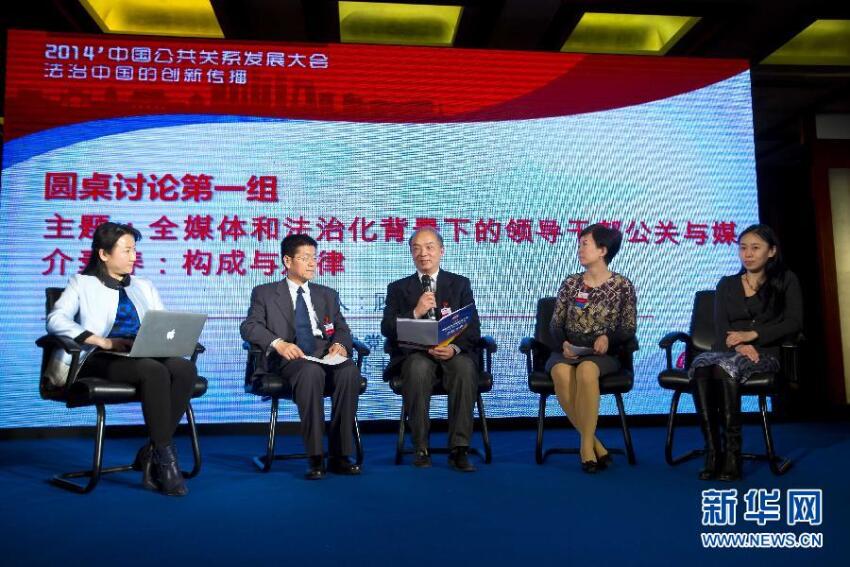 12月21日,2014中国公共关系发展大会嘉宾参与“全媒体和法制化背景下的领导干部公关与媒介素养:构成与规律”论坛。当日,由中国公共关系协会主办的2014中国公共关系发展大会在北京召开。本次大会的主题是“法治中国的创新传播”,旨在深入贯彻党的十八届四中全会精神,探讨法治中国背景下公共关系行业的机遇和发展路径。新华社发(赵冰 摄)