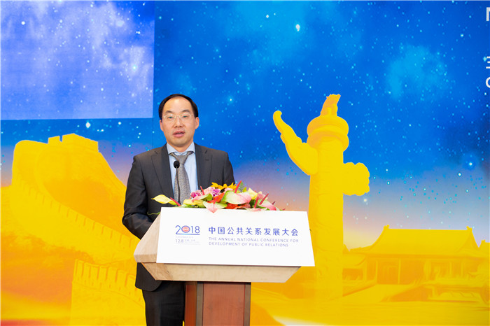 中国公共关系协会常务副会长李兴国主持2018公共关系蓝皮书首发式