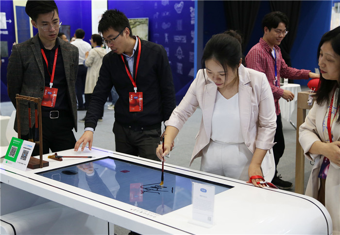 在南京国际展览中心二层展厅的中心位置,国家文化大数据产业联盟占据了700余平方米的展位。在展览展示区,国家文化大数据体系的架构以流程图的方式清晰呈现;而文化体验区是整个展区人气最高的地方,一系列能看、能写、能学、能玩的文化大数据技术和应用产品赚足了眼球。