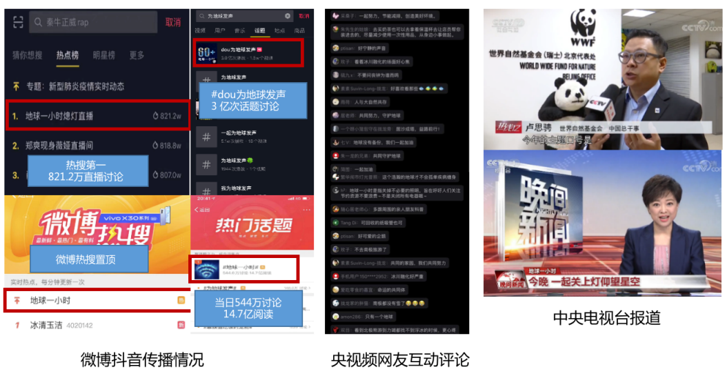i.占领舆情阵地:在后疫情舆论期间引发公众更多对人与自然进行理性反思,结合WWF的多年实践,提供可持续解决方案;参与“地球一小时”活动,为公众提供情绪出口和价值观引导;