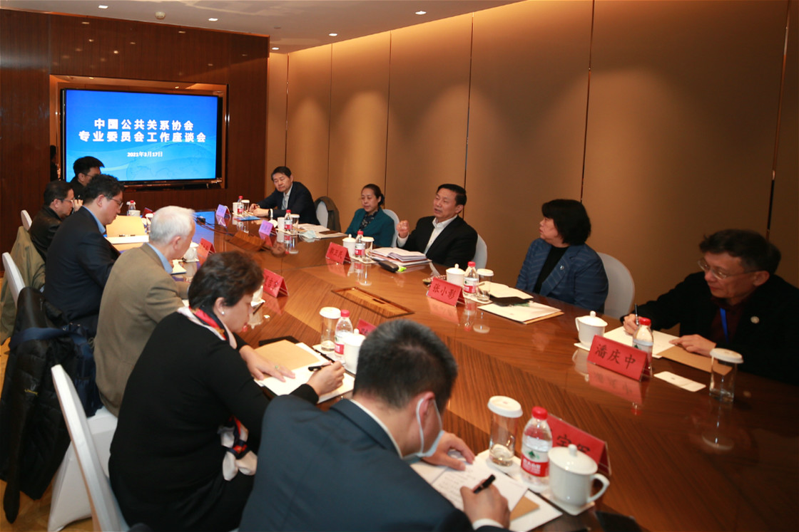 3月17日下午,中国公共关系协会专业委员会工作座谈会在京召开。十三届全国政协委员、国务院新闻办公室原副主任、中国公共关系协会会长郭卫民,中国公共关系协会副会长张小影、张晓兰,中国公共关系协会常务副会长兼秘书长王大平等协会领导,协会各专业委员会主任委员和协会副秘书长参会。座谈会就中国公共关系协会今年的主要工作安排,以及各专业委员会的工作情况进行了深入而广泛的交流。