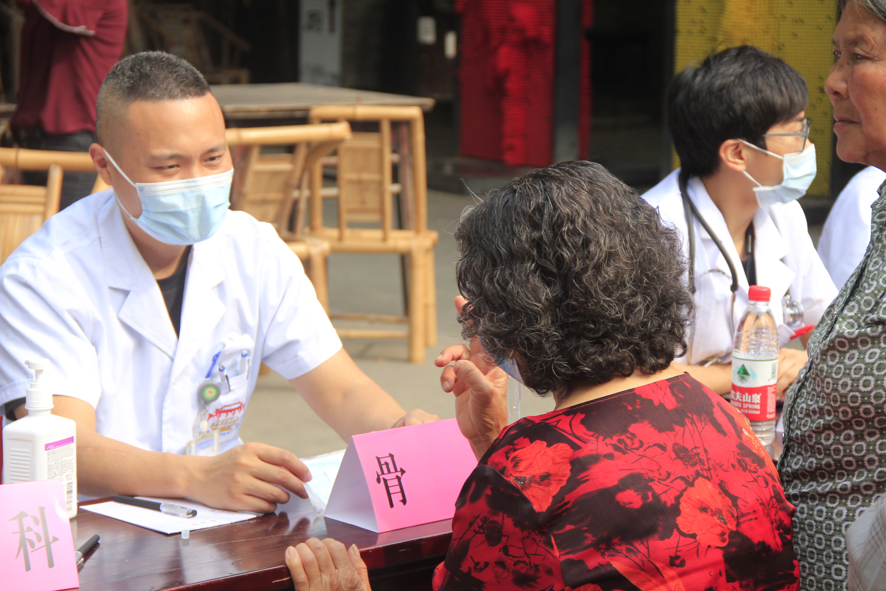 “学党史,办实事”,活动切实将党史学习教育成效转化成为群众办实事解难事的实际行动,华西临床医学院开展医疗义诊、送医送药活动。此次义诊队伍由华西临床医学院博士生组成,义诊内容涉及广泛,包括骨科、神经外科、心血管内科、妇产科、常规体检等等,最大程度地为群众提供完善的体检服务。志愿队伍现场向群众传播健康知识,并详细询问群众的身体状况,耐心分析病情,讲解注意事项,认真解答群众关于常见病、多发病的预防诊治及愈后疑难问题,为有需要的患者指导下一步的诊疗方向。义诊的同时,由急诊医学团队为当地群众开展急救培训、现场展示及互动。此次义诊受到了广大群众的一致好评和热烈赞赏,某位当地居民表示“我很高兴我的身体的各项指标都很正常,更让我高兴的是,在这样的义诊的活动中,我感受到了满满的幸福感。”