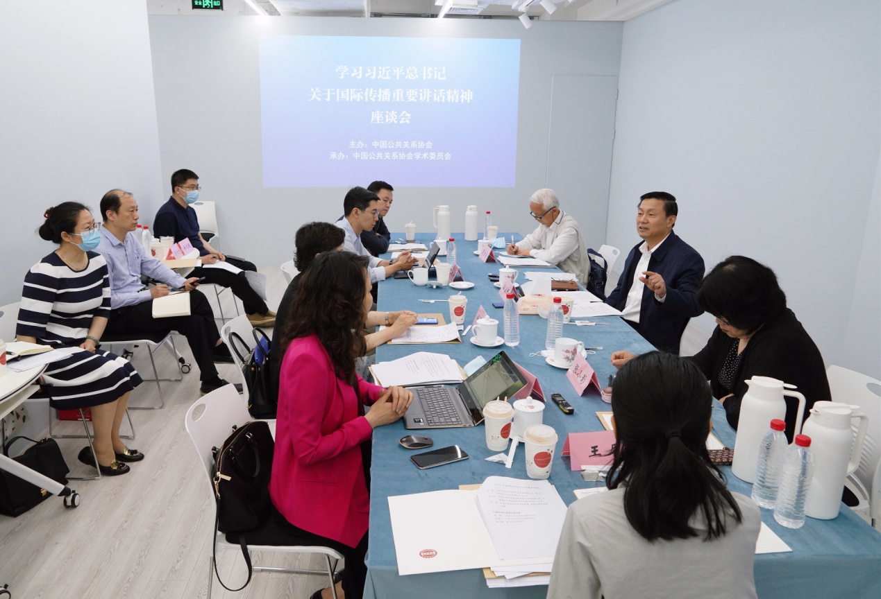 6月9日,由中国公共关系协会主办,中国公共关系协会学术委员会承办的“学习习近平总书记关于国际传播重要讲话精神座谈会”在京举行。全国政协委员、国务院新闻办公室原副主任、中国公共关系协会会长郭卫民,副会长张小影、夏吉宣,学术委员会部分副主任委员及专家学者参加了座谈会。