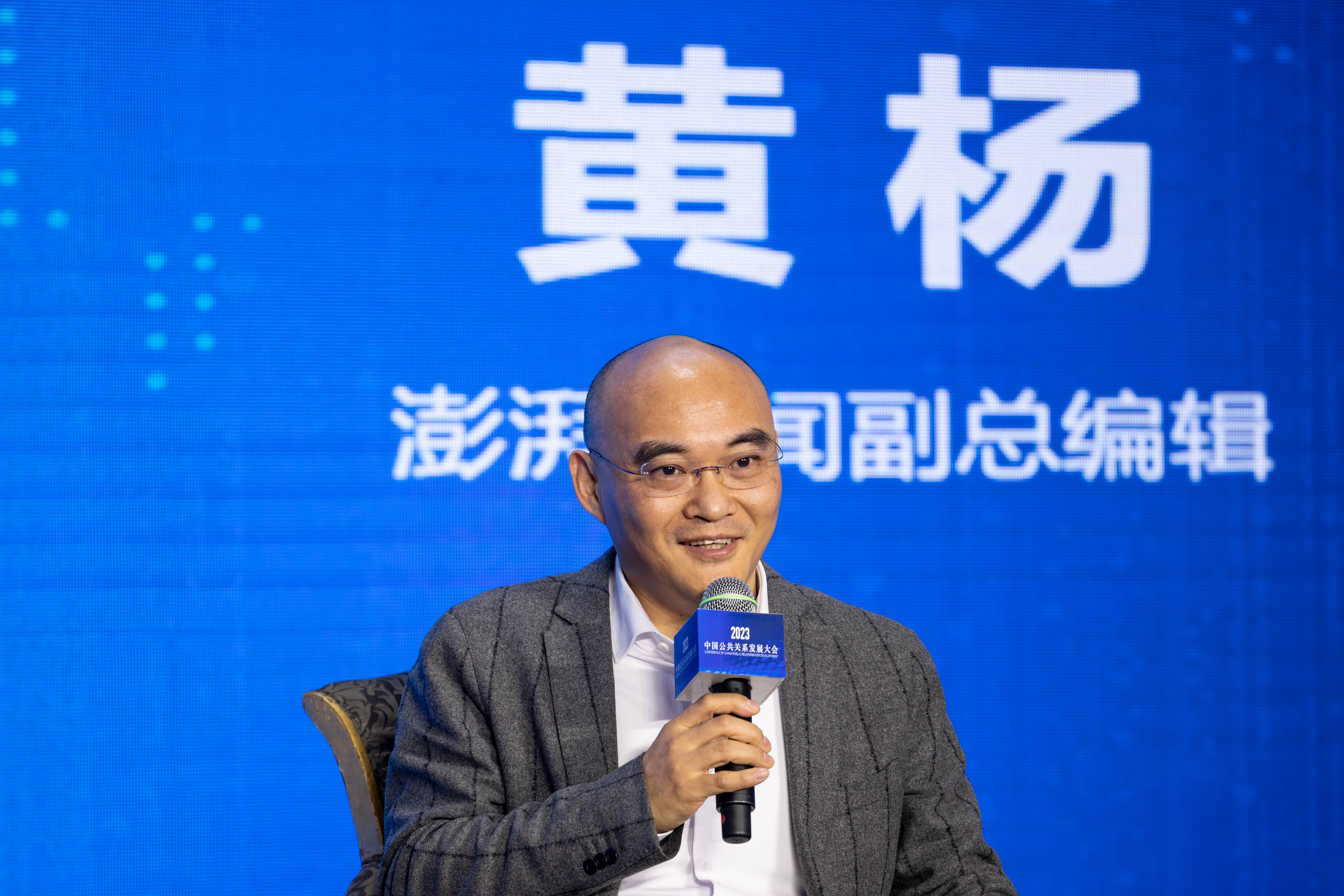 中国公共关系协会副会长、中国传媒大学国家公共关系与战略传播研究院院长董关鹏主持第一场圆桌论坛。论坛围绕“公共关系理论实践创新与高质量发展”主题展开演讲和讨论。在分享汇环节,贵州“村超”传播总策划阳章伟,厦门大学新闻传播学院院长、人民网原总编辑余清楚,五洲传播中心总编辑井水清,北京大学新闻与传播学院院长陈刚分别演讲。在圆桌会环节,南方都市报社总编辑刘江涛,蓝色光标集团党委书记、副总裁孔晶,澎湃新闻副总编辑黄杨,微博政务公益运营总经理李峥嵘开展对话。