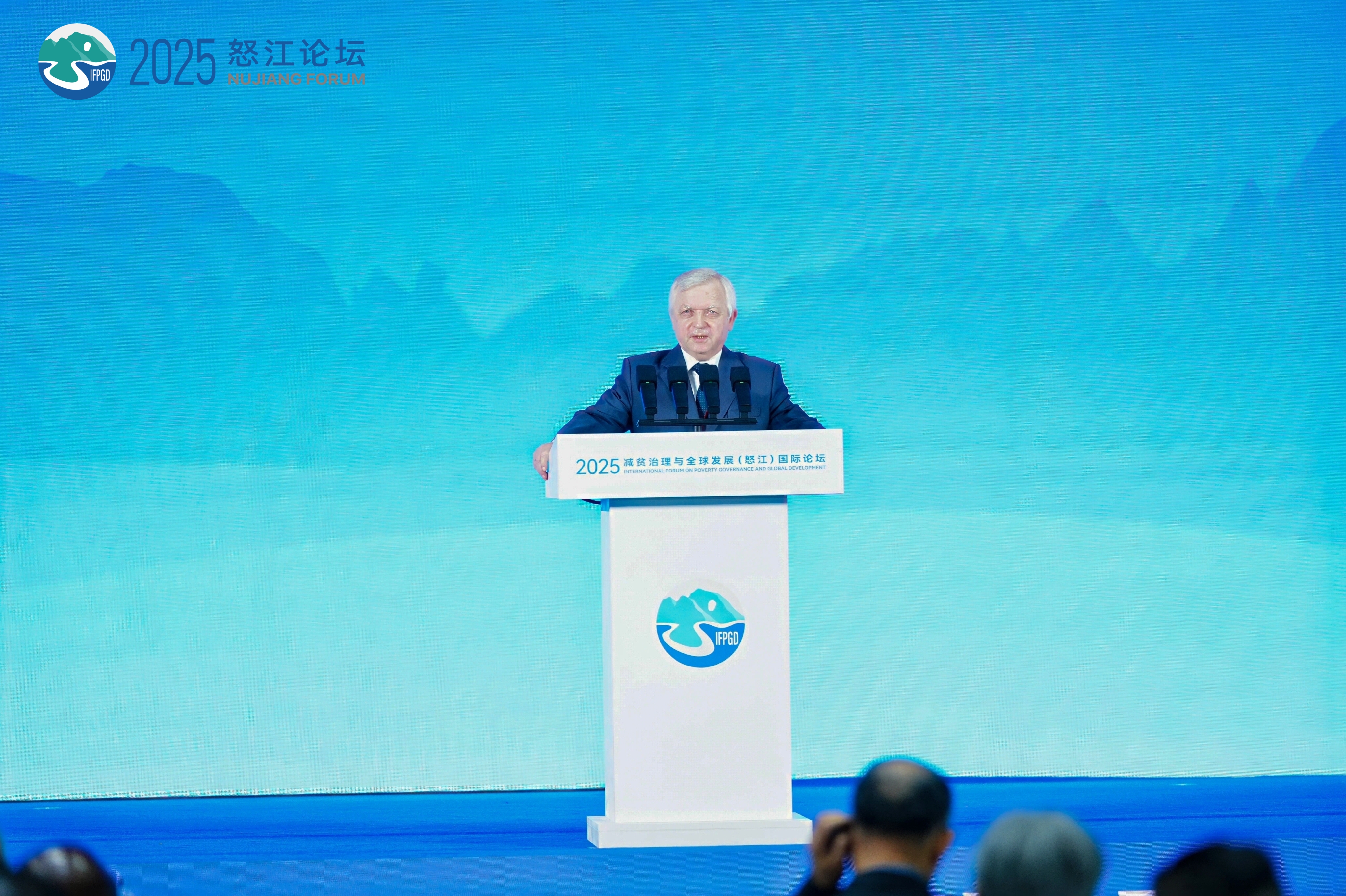 白俄罗斯—中国友好协会主席、白俄罗斯前副总理阿纳托利•托济克在2025减贫治理与全球发展(怒江)国际论坛演讲。